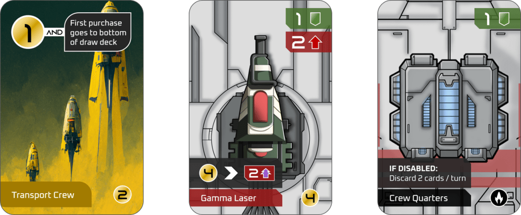 We’ve reduced the cost of the Transport Crew from 3 to 2 credits. We have reduced the charge up cost of the Gamma Laser from 5 to 4 credits. And we’ve reduced the graphic size of the Crew Quarters so it looks more distinct from the Command Deck from a distance.